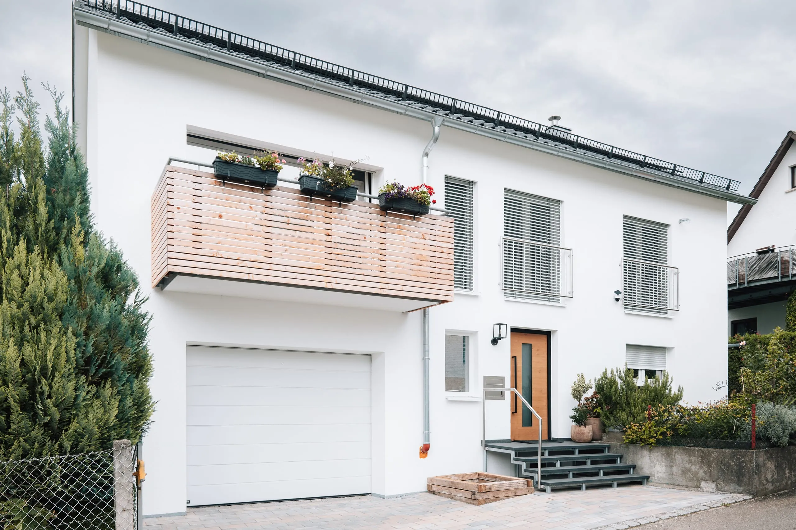 Während die Innenarbeiten, einschließlich Abriss, neuer Raumaufteilung und Einrichtung, in Eigenregie ausgeführt wurden, übernahmen Fachfirmen die Erneuerung von Dach, Fassade und Treppenhaus. Auch die alten Fenster wurden ersetzt – und nicht nur das: Neue Jalousien und Rollläden mit Automatisierung aus dem Hause Elero kamen ins Haus. "Die alten Fensterläden mussten wir früher mühsam per Hand öffnen und schließen. Jetzt genügt ein Knopfdruck, und die Jalousien reagieren", sagt Ella Gigantiello.