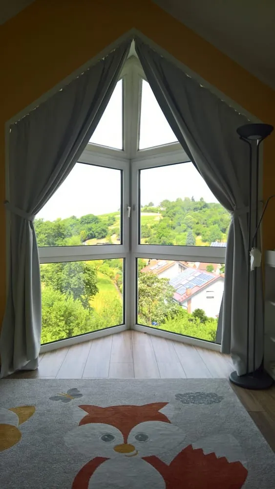 Schrägfenster und Erker sind eine Herausforderung bei der Gestaltung der Kinderzimmer.