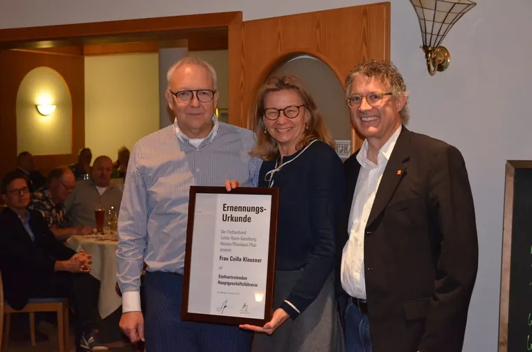 Hermann Hubing und der Präsident des Fachverbandes, Stefan Zock, überreichten der neuen Frau in der Leitung bei den Bad Wildunger Fenstertagen vor großem Publikum ihre Ernennungsurkunde. Hubing sagte: „Ich danke Frau Klausner für die bisherige hervorragende Leistung und freue mich auf eine weitere gute Zusammenarbeit.“ Csilla Klausner bekam großen Applaus von den Mitarbeitern des Fachverbandes Leben Raum Gestaltung Hessen/Rheinland-Pfalz und den angereisten Fensterbauern aus ganz Deutschland, die sich während der zweitägigen Tagung in Bad Wildungen über Neuheiten in der Branche informierten.