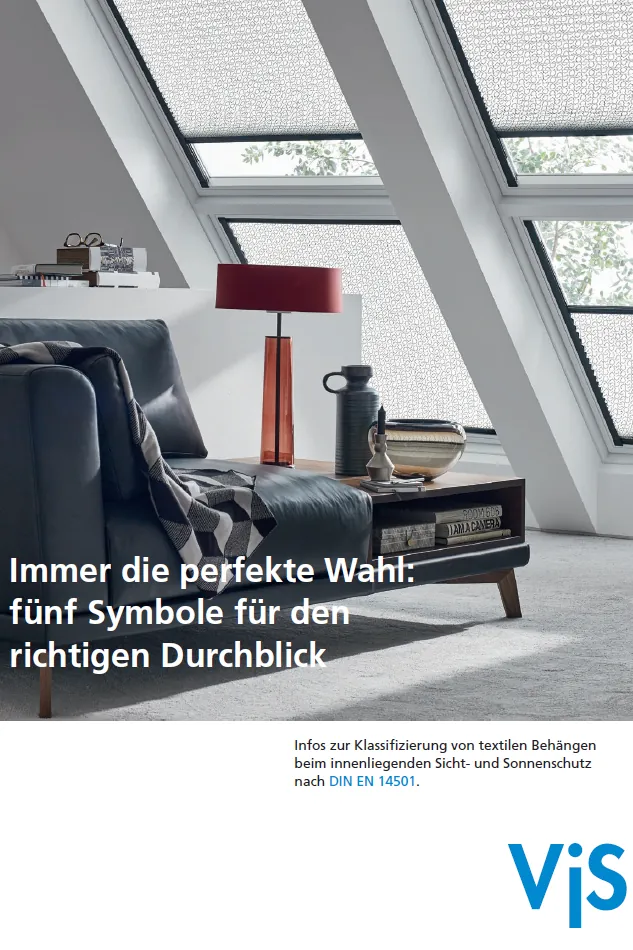 Im Zuge der Novellierung der europäischen Normen DIN EN 14500 und 14501 hat der Verband innenliegender Sicht- und Sonnenschutz (ViS) ein normkonformes Kennzeichnungssystem entwickelt und damit die Klassifizierung von textilen Behängen verständlich und verbraucherfreundlich aufbereitet. Die funktionalen Eigenschaften Durchsicht, Sichtschutz, Blendschutz, Verdunkelung und sommerlicher Wärmeschutz sind nun laut ViS mit Symbolen versehen, die mit den Klassifizierungen verbunden sind und dem Verbraucher Orientierung geben: Das ist in einer informativen Broschüre kompakt und verständlich erklärt. Sie gibt Auskunft, wie sich visueller und thermischer Komfort gezielt erhöhen lassen, und steht dem Fachhandel zum kostenlosen Download unter www.vis-online.de zur Verfügung. Unter www.komfort-mit-sonnenschutz.de sind weitere Informationen zu finden – u.a. auch ein Video, welches kurz und anschaulich die Symbol-Eigenschaften erläutert.