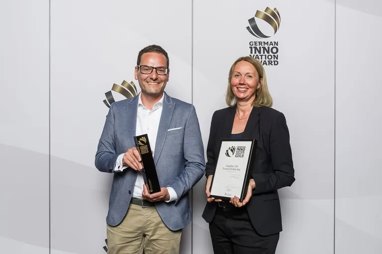 "Dass Drapilux nach dem German Design Award 2018 nun auch den German Innovation Award in Gold erhält, freut uns sehr", sagt Designerin Kirstin Herrmann. Die Anerkennung zeige, dass Drapilux sowohl bei Funktion als auch bei Design überzeugt. Neben Herrmann nahm Marketingleiter Markus Overbeck den Preis entgegen.