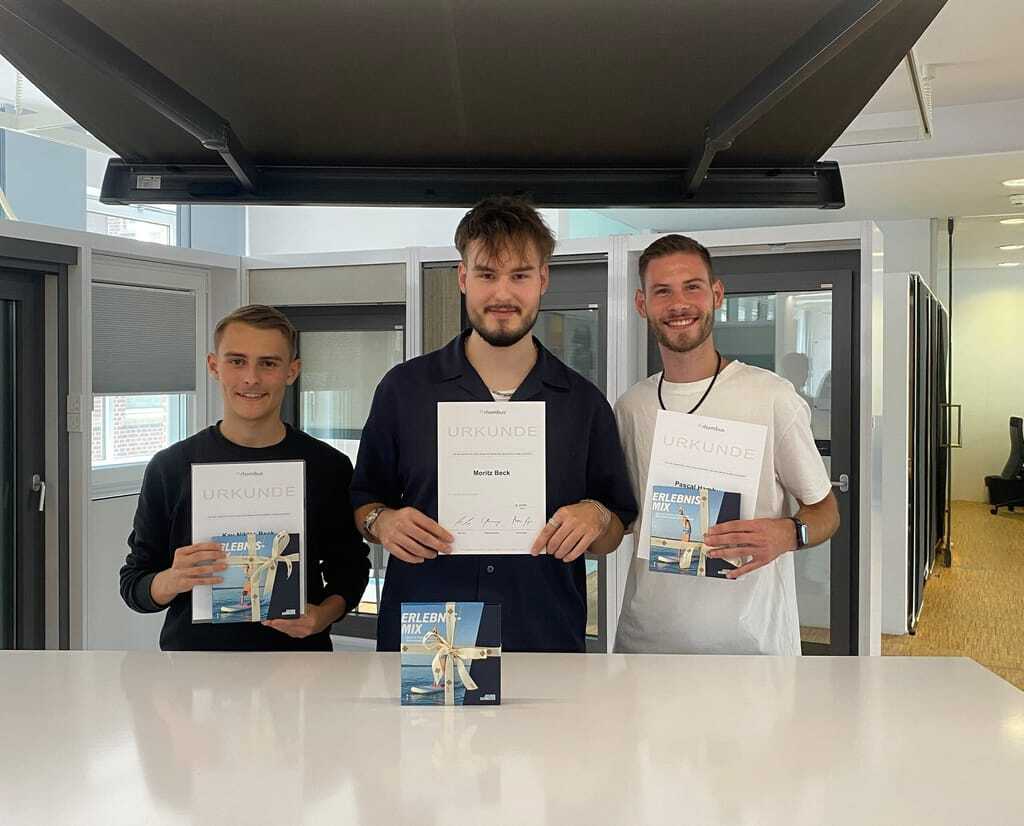 Am Standort Musberg haben Kay Beck, Moritz Beck und Pascal Hamburg ihre Ausbildung zum Industriekaufmann erfolgreich absolviert, während sich in der MHZ-Niederlassung Kirchheim unter Teck Laurentia Avdyli über ihren Ausbildungsabschluss zur Kauffrau für Büromanagement freuen kann.