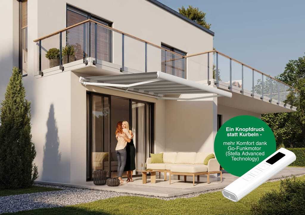 Erhardt bringt mit der neuen Markisenserie Go eine Produktlinie auf den Markt, die Funkmotorisierung serienmäßig integriert und gezielt den Preiseinstieg im Bereich komfortabler Sonnenschutzlösungen stärkt.