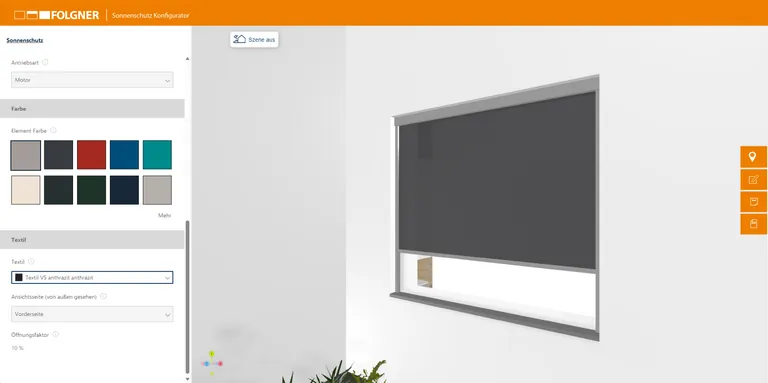 Der Sonnenschutzkonfigurator erhöht die Beratungsqualität. So lassen sich z.B. die Transparentstufen der Tücher visualisieren. - © Folgner
