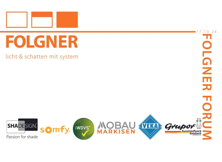 Die Veranstaltung findet im Hotel Kaisergarten in Deidesheim statt. Gemeinsam mit den Partnern Veka, IWDVS, Grupor, Shadesign, Mobau Markisen und Somfy präsentiert Folgner innovative Konzepte für sommerlichen Hitzeschutz, Energieeffizienz und Gebäuderesilienz. Innovationen bei den Zipscreens sind u.a. Lösungen für die Ganzglasecke wie auch Solar-Zipscreens. Bei den Rollläden werden u.a. das Einschubsystem für bauseitige Mauerkästen für eine fehlerfreie Montage vorgestellt. Eine Neuheit ist der Sky Twin, der Rollladen und Zipscreen in einem Element vereint und so im Sommer wie im Winter komfortable Lösungen ermöglicht. Das Forsa-Raffstoreprogramm wurde um eine neue Lamellenform ergänzt. Besonderes Augenmerk gilt den IWDVS-Systemlösungen für den energetischen Fassadenbau: Hier bietet das neue Folgner Schachtsystem 3-1 drei Lösungen in einem System – eine materialarme Konstruktion, werksseitig vormontiert für eine prozesssichere Umsetzung im Fassadenbau und eine gewerkübergreifende Zusammenarbeit.