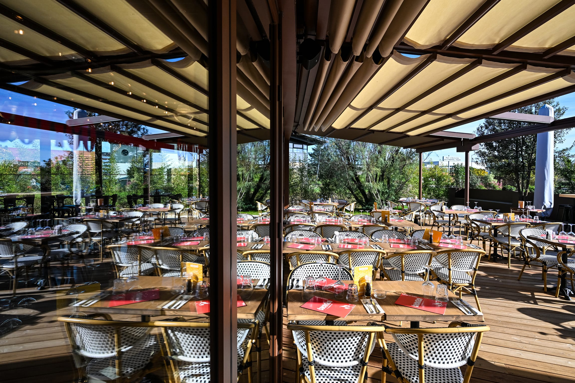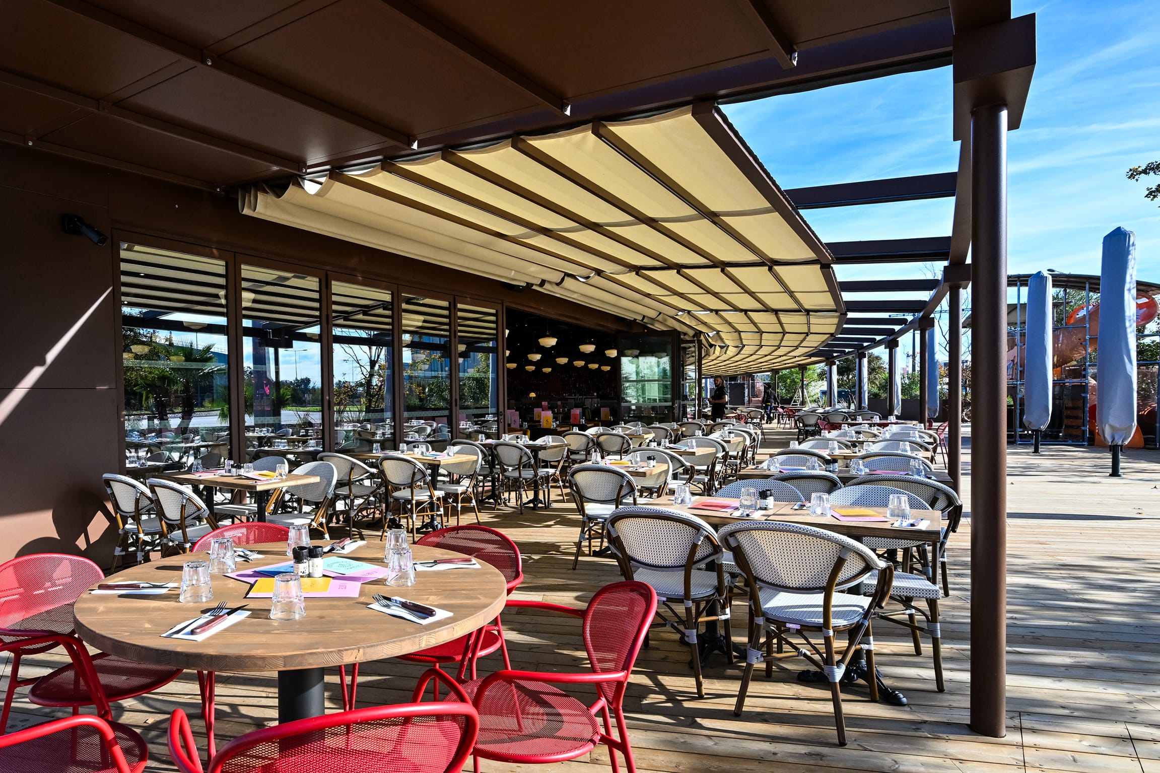 Eine neue Gastronomie-Location im südfranzösischen Colomiers bei Toulouse lebt im Sommer besonders von ihrer weitläufigen Terrasse. Um die Sitzplätze im Freien vor Sonne zu schützen und für die Abendstunden nutzbar zu machen, erhielt sie eine Markisenanlage von Markilux.