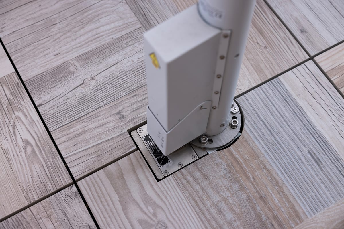 © CaravitaIm Erdgeschoss kommen vier Big Ben-Schirme in zwei maßangefertigten Größen, 4,5 mal 5,5 und 4 mal 5,5 Meter zum Einsatz. Aufgrund der abschüssigen Lage wurde mit Mastverlängerungen gearbeitet, damit die Schirme bündig auf der gleichen Höhe abschließen. -