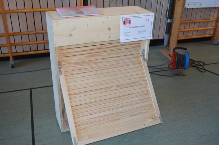 © MetzgerIm Rahmen der Freisprechungsfeier in Wiesau waren die Gesellenstücke der frischgebackenen Rollladen- und Sonnenschutzmechatroniker ausgestellt.