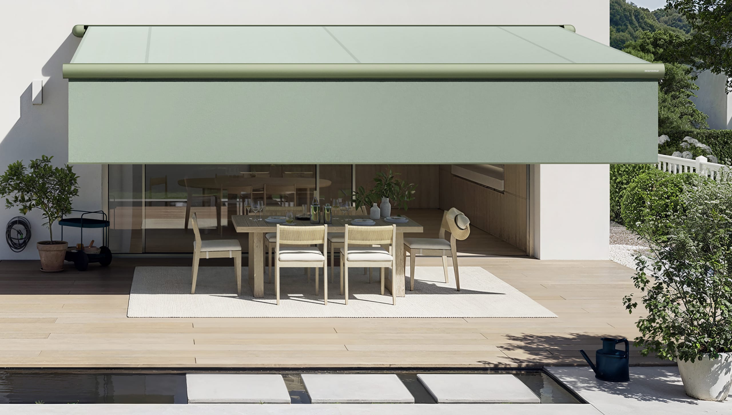 © WaremaKassette, Gelenkarme und Zubehör aus hochwertigem Aluminium werden individuell nach Warema Farbwelt pulverbeschichtet. Die Oberflächenqualität hochwetterfest-Feinstruktur ist in den Farbkategorien Highlight und Variation ohne Mehrpreis verfügbar. -