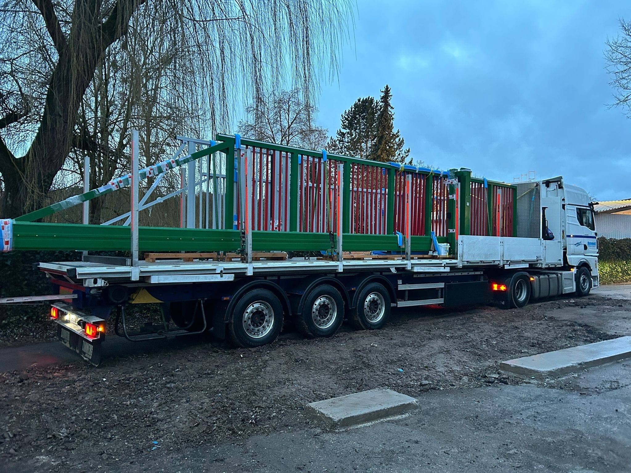 © Berner TorantriebeDas Schiebetor mit den Maßen 8.500 mal1.600 Millimeter und einer Stabfüllung von 30 mal 30 Millimeter wurde in den frühen Morgenstunden angeliefert. Ein Kundenvorteil dieser Serie ist, dass Tor und Antrieb aus einer Hand kommen und somit technisch optimal aufeinander abgestimmt sind. -