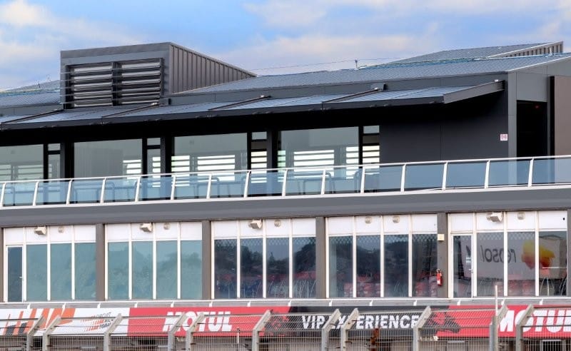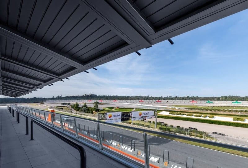 © KEAuf der MotoGP-Rennstrecke Circuit Ricardo Tormo im spanischen Valencia hat KE eine technisch anspruchsvolle Überdachungslösung für den VIP-Bereich realisiert. Im Rahmen der Neugestaltung der Hospitality-Bereiche installierte die Division Contract Spanien gemeinsam mit dem Händler Tecnoterrazas 17 Doppelmodule der bioklimatischen Pergola Kedry Prime – in einer Sonderausführung ohne vordere Stützen. -