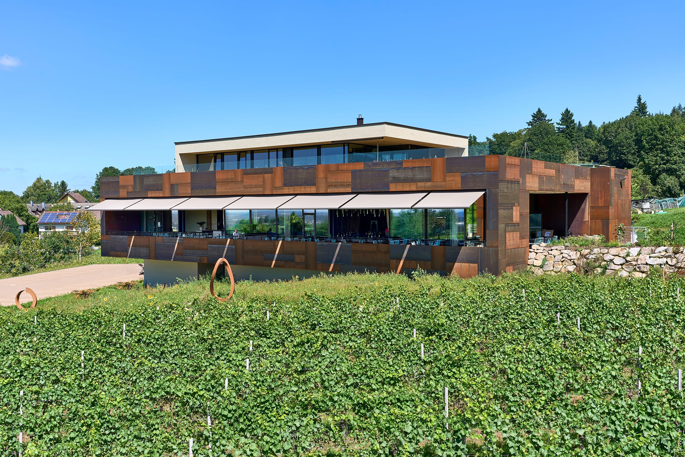 © MarkiluxIm Jahr 2020 entschieden sich die Eigentümer des Weinguts Kopp in der Nähe von Baden-Baden, ihr erlesenes Weinsortiment um ein kulinarisches Angebot zu erweitern. Nach zwei Jahren Bauzeit konnte die Familie das Restaurant Ebanat und die neue Vinothek im September 2023 einweihen. -