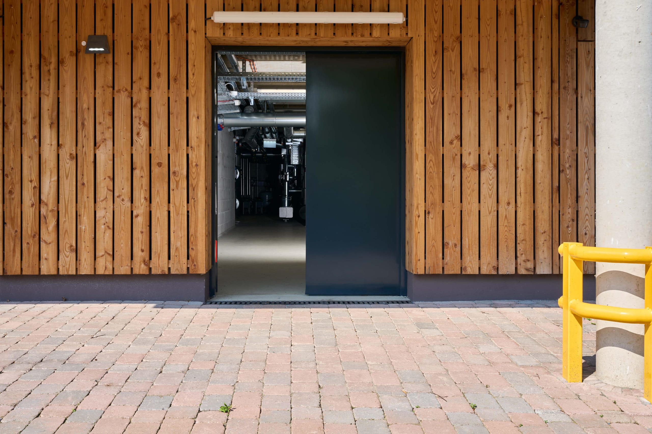 © Matthias Groppe/TeckentrupTüren in Fluchtwegen müssen immer zu öffnen sein, selbst wenn die Türen von außen verschlossen sind. Dafür sorgen die entsprechenden Schlösser mit Panikfunktion. Die Außen-Feuerschutztüren sind teilweise zusätzlich mit Rauchschutz ausgestattet (EI₂30-C5-S₂₀₀). Für die Dichtigkeit sorgt eine absenkbare Bodendichtung. -