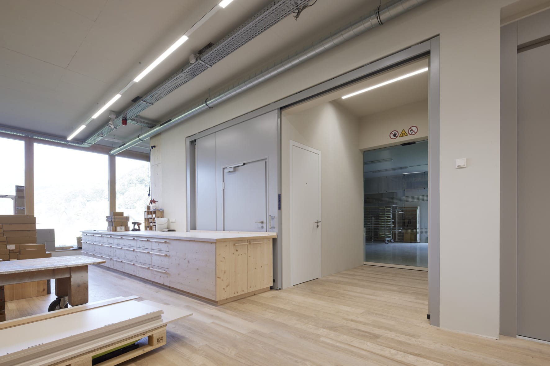 © Hörmann/Laura ThiesbrummelDas Feuerschutz-Schiebetor FST in T30-Ausführung schließt nur im Brandfall. Im Normalbetrieb liegt es platzsparend vor der Wand und gibt die komplette Öffnung frei.
