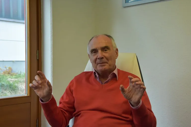 Bernd Heydebreck (76) fragt sich nach eigenen Angaben jeden Morgen, wenn er über die Autobahn nach Forstern fährt, ob er gerne ins Büro kommt. Die Freude, sagt er, sei bis heute geblieben. - © Kober