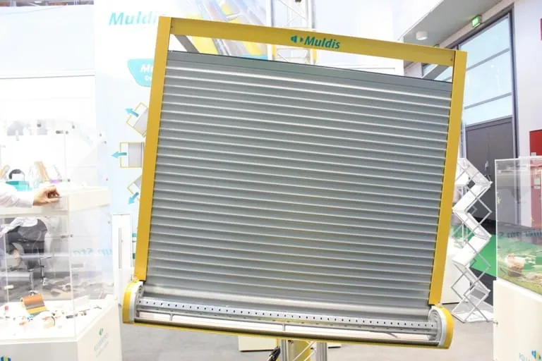 Am Stand des Unternehmens Rolladenexpress zeigte Geschäftsführer Eric Blumenstiel den Multi-Direction-Shutter Muldis. Dieses Rollladensystem erlaubt Fachbetrieben per Umrüstset Rollläden in jede Richtung fahren zu lassen: nach oben, unten und zur Seite in jedem Winkel ohne Seilzug. Eine patentierte Spirale in der Rollladenführung von Entwickler Hubert Hünker erlaubt jede Laufrichtung und verhindert das Hochschieben des Panzers, z.B. durch Einbrecher. Mit dem Umbauset bis 1,30 Meter Breite bekommen Anwender zwei Sonderspiralen, zwei Teleskopstangen mit Gegenarretierung in der Welle, eine Aufhängefeder für die Motorseite, eine stranggepresste Rollladenlamelle und Befestigungsschrauben. Für größere Breiten bis 1,95 Meter liefert Rolladenexpress eine dritte Teleskopstange.