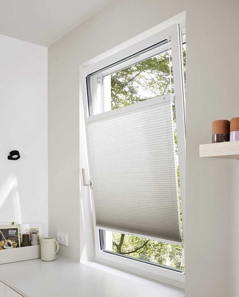 Das verspannte System eignet sich nach Unternehmensangaben auch für Drehkipp-Fenster. Der Behang bleibe stets sauber in Position und beeinträchtige den Fenstergriff nicht. Seitlich geführte Schnüre halten die Vorderseite vollständig frei von sichtbaren Bedienelementen. So sei eine reibungslose Bedienung auch bei gekipptem oder geöffnetem Fenster gewährleistet.