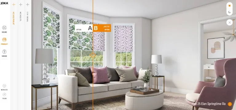Der digitale Joka Sonnenschutzdesigner unterstützt den Fachhandel bei der Endkundenberatung. Mit dem neuen Planungstool lassen sich alle 431 Stoffe der Plissee-Kollektion Positano in realistischen Raumsituationen visualisieren und individuell anpassen.