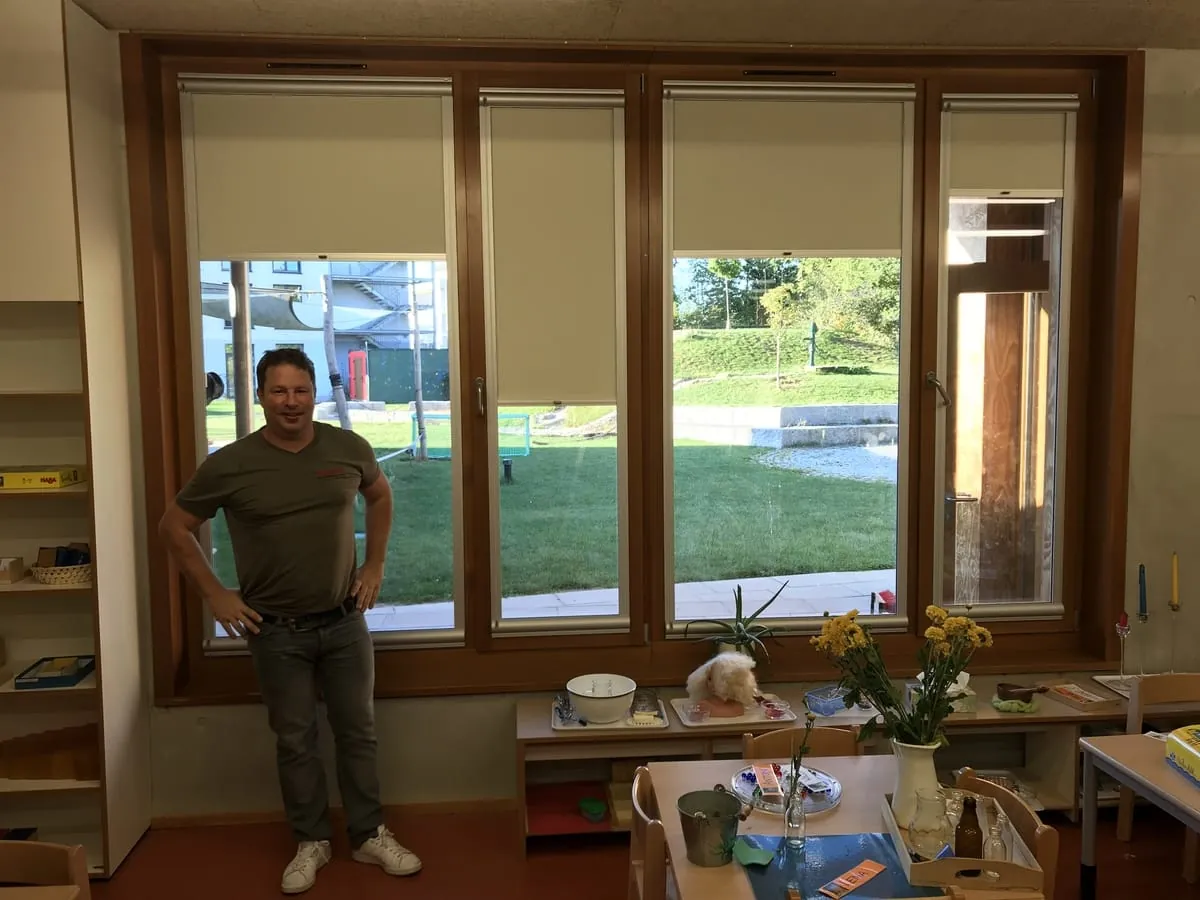 In dem kleinen Häuschen in Offenbach am Main wurde ein Schlaf- und Wohnzimmer mit neuen Sonnenschutzrollos zu versehen. Der Clou dabei: Sie sollten die Räume nicht komplett verdunkeln, sondern lediglich die Sonne abschirmen und weiterhin Licht hereinlassen.
