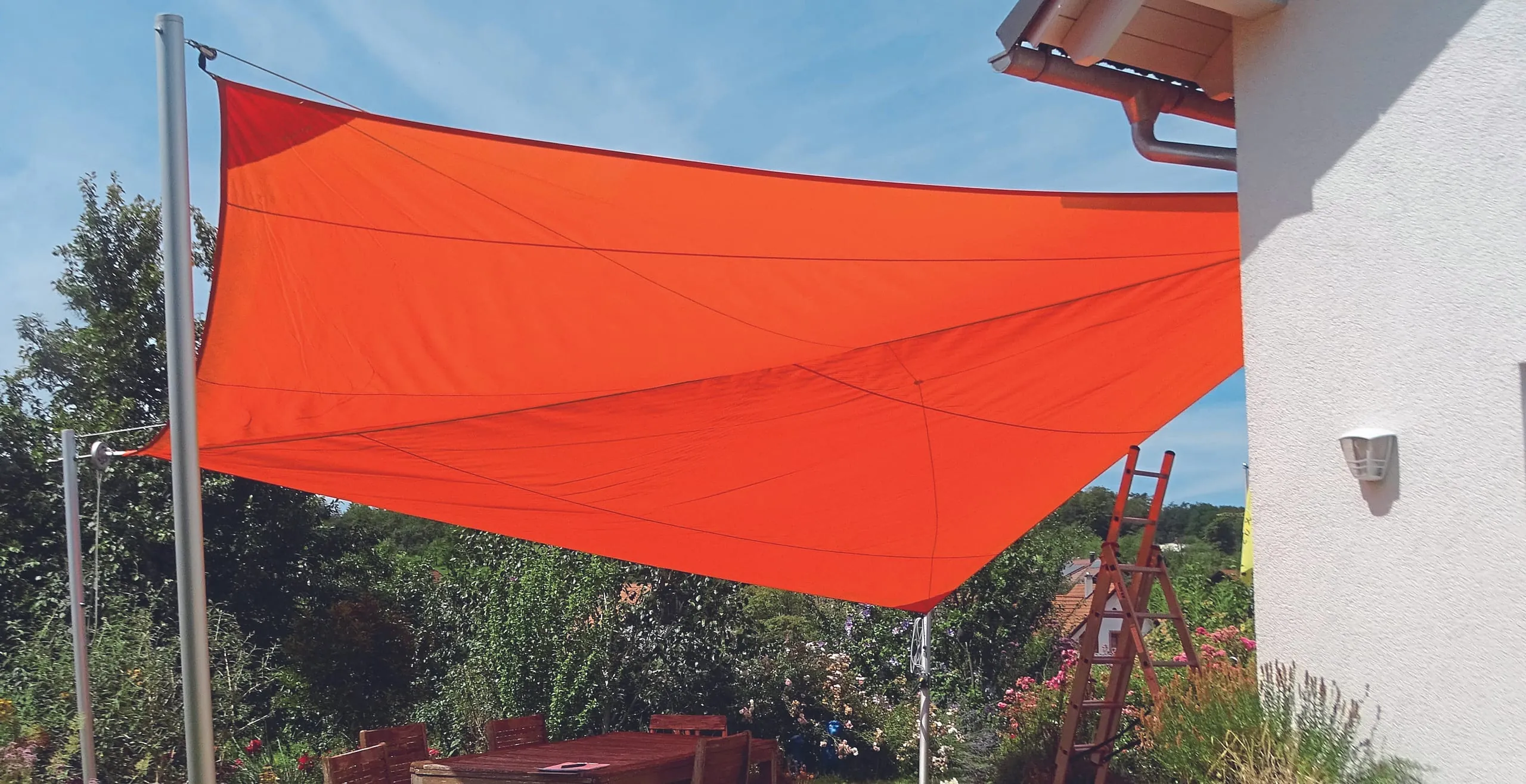 Der Fachbetrieb hat das Sonnen­segel fach- und bestimmungsgemäß montiert. - © Müller