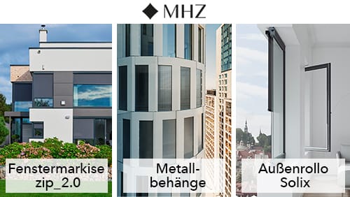 MHZ stellt mehrere Produkte in den Fokus seines virtuellen Auftritts: den Außenrollo Solix, die Metallbehänge s_enn, s_enro und s_onro sowie die patentierte Technik der Fenstermarkise zip_2.0. Solix passt dem Unternehmen zufolge in nahezu alle Fenster und lässt sich einfach von innen in den Fensterrahmen einsetzen – ohne Gerüst oder Beschädigung an Fenster und Fassade. Mit speziell entwickelten Arretierungen werde der umlaufende Rahmen aus Winkelprofilen im Blendrahmen gesichert. Der Antrieb erfolgt über einen Elektro-Funkmotor mit integriertem Akku und raumseitiger Ladebuchse, so dass keine Kabel- und Elektroarbeiten notwendig sind. Optional bietet MHZ auch den Betrieb mit Solarpanel an.