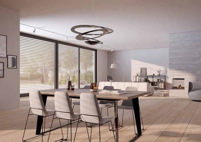 Eine neue Lichtleitlamelle für Raffstores von Alukon sorgt dank vordefinierter Lamellenstellung für einen energieeffizienten Sonnenschutz bei gleichzeitiger optimaler Lichtlenkung. So haben Nutzer zu jeder Zeit das perfekte Tageslicht im Raum und sparen dabei gleichzeitig Energiekosten.