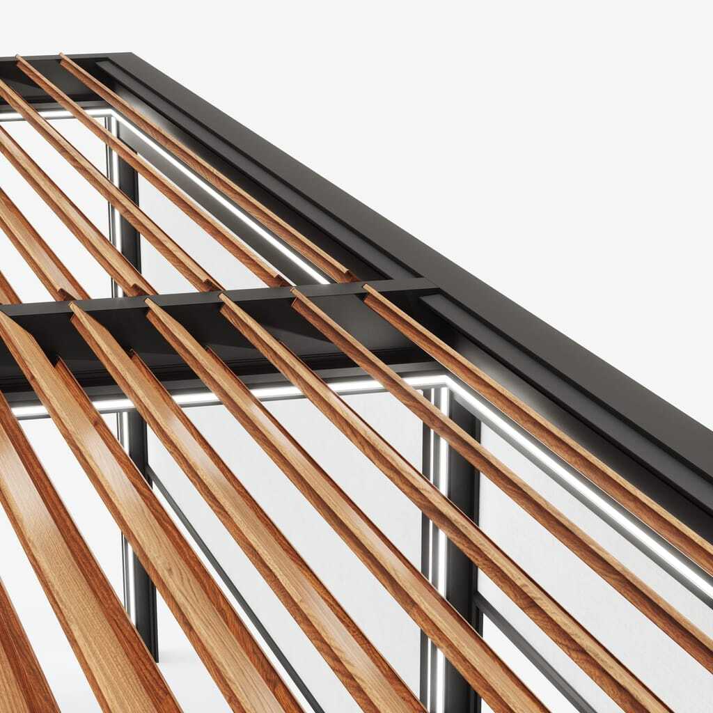 Beim Dachmodul lassen sich die Lamellen von 0 bis 135 Grad rotieren. Das gibt Nutzern die Möglichkeit, das Sonnenlicht und den Schatten je nach Wetterlage zu regulieren. Die spezielle Form der Dachlamellen im Zusammenspiel mit den Dichtungen schützen vor Wasser und sorgen für Komfort auch bei Regenwetter.