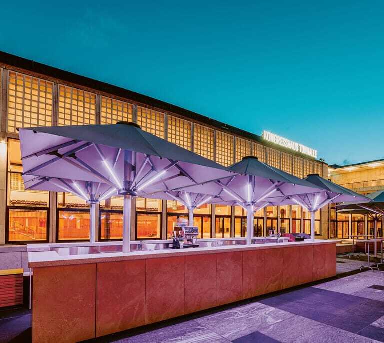 Glatz bietet dabei maßgeschneiderte Lösungen – von individuellen Schirmgrößen bis zu kreativen Designs. Mit dem Contract Book haben Architekten und Planer ein modernes Planungstool zur Hand, um kreative und individuelle Außenräume zu realisieren. Parasol First steht für eine neue Art der Planung – effizient, kreativ und zukunftssicher. So werden Positionierung, Befestigungen und Elektrozuleitungen passgenau eingeplant, um spätere Anpassungen, Stolperfallen oder unnötige Kosten zu vermeiden.