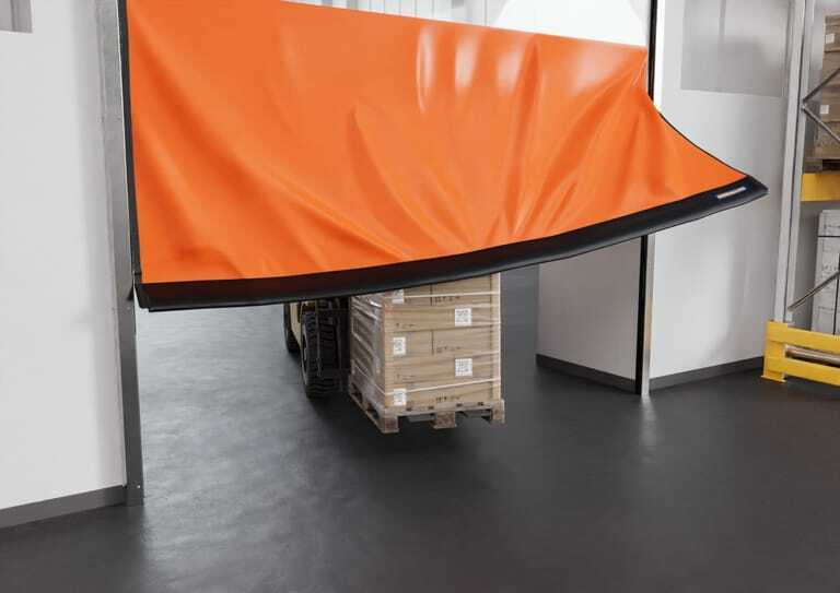 Ein Crash ist kein Problem beim flexiblen Schnelllauftor V 5025 Z von Hörmann. Es fädelt sich durch die Torbewegung automatisch wieder ein. - © Hörmann