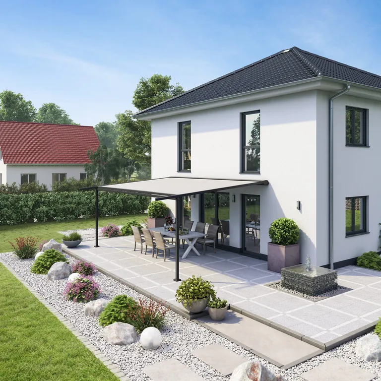 Die Markise Nova Top basiert auf der Trend 550 von Nova Hüppe. Die schlanken Profile sorgen für optische Zurückhaltung. Mit einer Breite von maximal sechs Metern bei einem Ausfall bis 5,5 Meter beschattet die Pergolamarkise Außenbereiche bis 33 Quadratmeter.