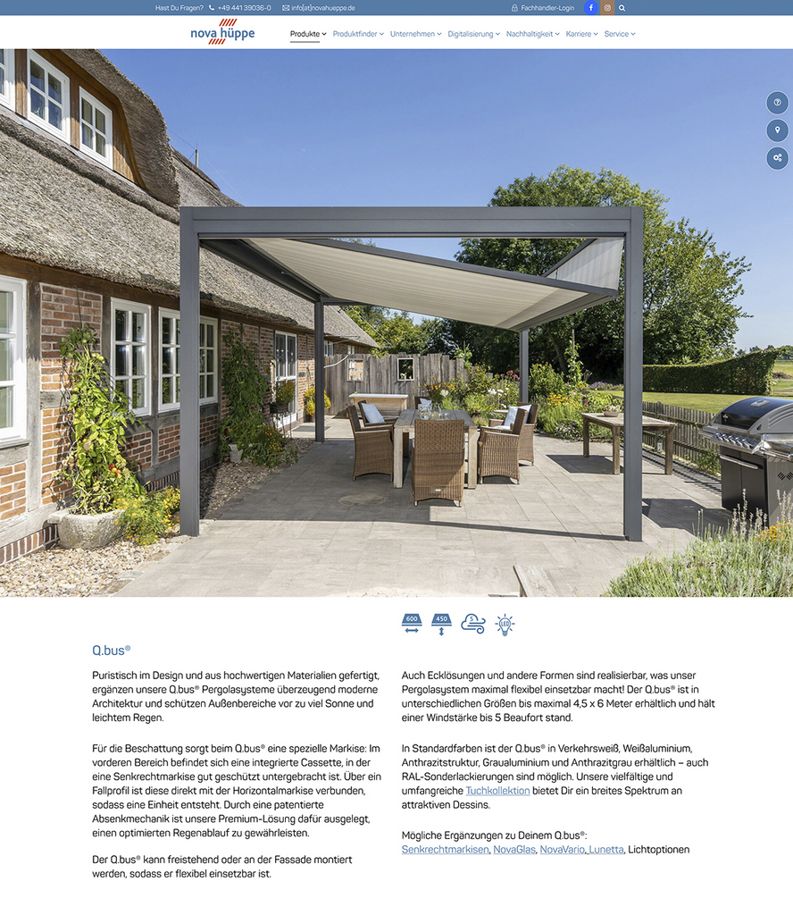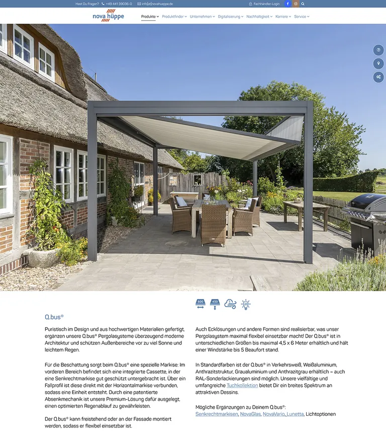 Der Markisenhersteller Nova Hüppe aus Oldenburg hat seinen Internetauftritt komplett überarbeitet. Fachpartner und Endkunden sollen von neuen digitalen Werkzeugen profitieren.