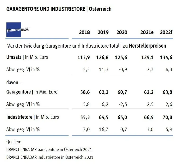 Garagentore und Industrietore in Österreich 2021 Nur leichte Umsatzdelle bei Garagen- und Industrietoren