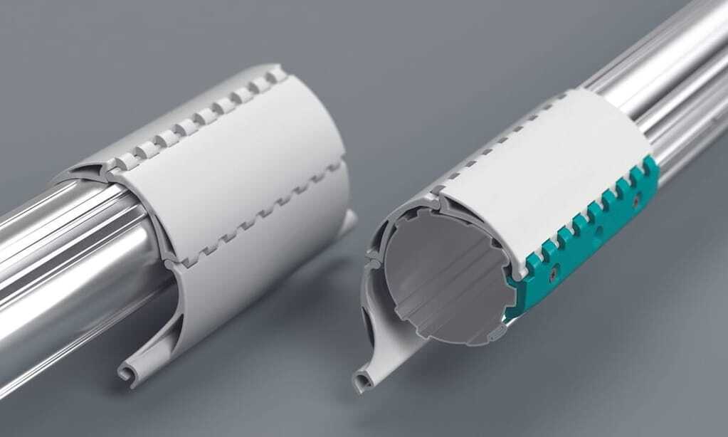 Die neuen Wellenverbinder dienen der Befestigung des Panzers an der Abrollmechanik und werden mit der Welle verschraubt. Das sorge für einen stabileren Abrollvorgang als bei Standardlösungen. Damit erhöhen die Verbinder sowohl bei Alu- als auch PVC-Panzern die Zuverlässigkeit und sorgen insgesamt für eine längere Lebensdauer des gesamten Systems.