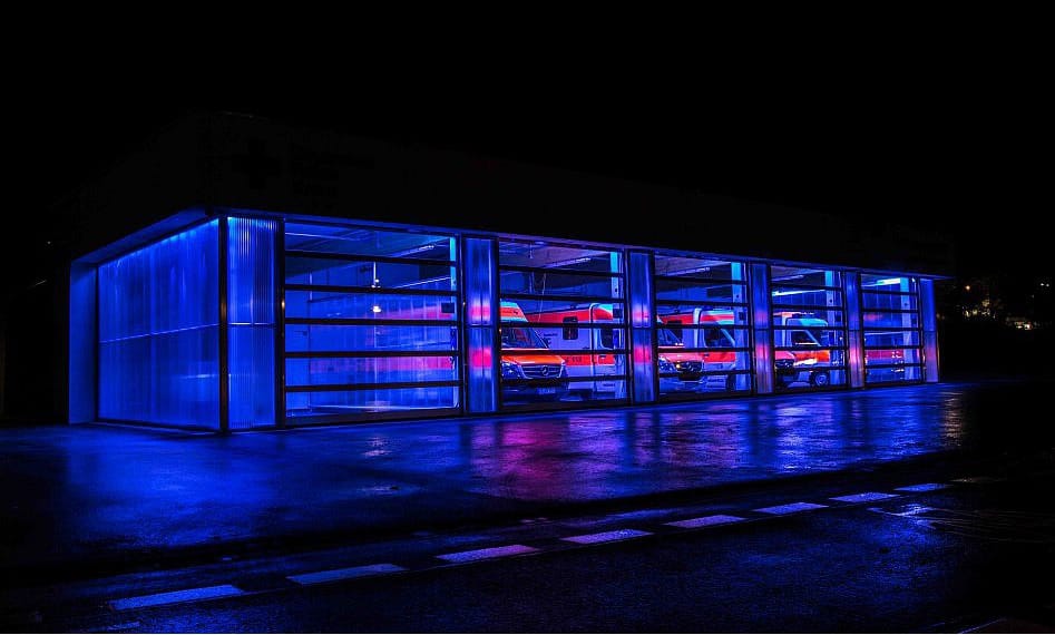 Das Deutsche Rote Kreuz (DRK) hat die Rettungswache in Hünfeld eingeweiht. Die Tore von Alpha Deuren lassen dabei tief blicken, dafür sorgt die Vollverglasung aus Plexiglas.