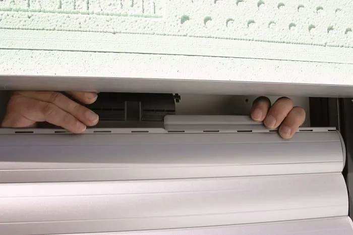 Schritt 3: Lösen Sie die losgeschraubte Führungsschiene des Rollladens aus der Basisschiene. Der Zugang zum Rollladenpanzer liegt damit frei.