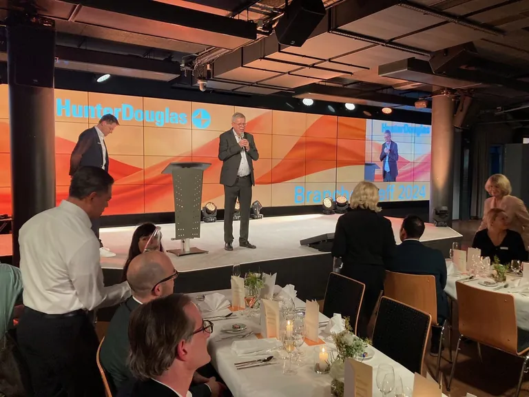 Beim Branchentreffen von Hunter-Douglas in Stuttgart hat Friedrich W. Petrat die Geschäftspartner dazu aufgerufen, gemeinsam neue Produkte zu entwickeln. Angesichts der schwachen Baukonjunktur in Deutschland sei es jetzt an der Zeit, die Entwicklung neuer Lösungen voranzutreiben für die nächste Wachstumsphase.