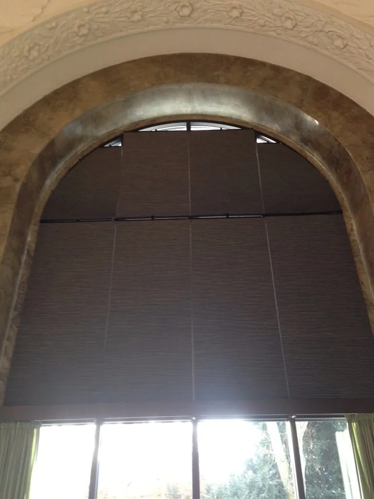 Grundlage einer von ihm angefertigten Schablone obendrein sechs Sondermaße, nämlich jeweils zwei abgerundete Plissees als obere Eckelemente, die den Abschluss an den Rundfenstern bilden. Veranstalter haben somit die Möglichkeit, mithilfe einer manuell bedienbaren Schubstange jederzeit für Blend- und Sonnenschutz im Muschelsaal zu sorgen.