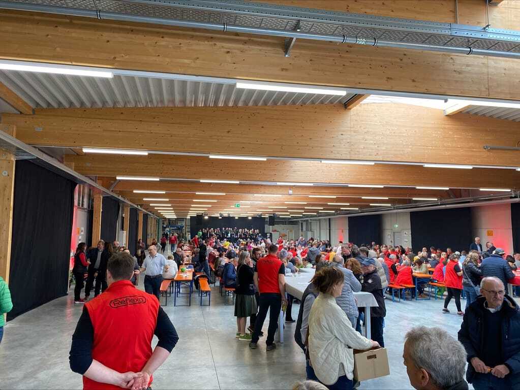 Knapp 2.800 Besucherinnen und Besucher – darunter Fachpartner, Mitarbeitende und Familien aus der Region – kamen zum Tag der offenen Tür von Reflexa. Der Tag begann mit Blasmusik der Schützenkapelle Holzheim und einem Weißwurstfrühstück in den Produktionshallen. Auf der Bühne in Halle 5 wechselten sich über den gesamten Tag Programmpunkte ab: vom Gospelchor Günzburg über Garde- und Showtanz bis hin zu einer Zaubershow und dem Männer-Ballett des Carnevals-Club Harthausen.