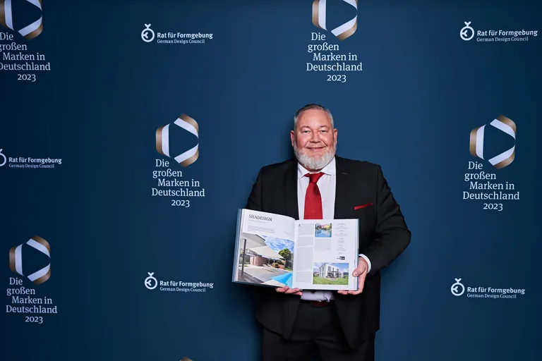 Frank Reisenauer, CEO von Shadesign, war stellvertretend für das gesamte Unternehmen nach Berlin gereist, um ein persönliches Exemplar der Jubiläumsausgabe Die großen Marken in Deutschland 2023 entgegenzunehmen. "Jedes Jahr würdigt der Rat für Formgebung mit seiner Publikationsreihe herausragende Markenunternehmen. Wir freuen uns, dass wir nunmehr Teil dieses exklusiven Kreises sind", sagte der Geschäftsführer. Shadesign sei vom Rat für Formgebung eingeladen worden, in der Jubiläumsausgabe 2023 seine Erfahrungen aufzuzeigen, mit denen man die Herausforderungen der jüngsten Vergangenheit erfolgreich bewältigt habe. Zugleich zeige das Unternehmen auf, welche Maßnahmen für die Zukunft geplant seien. "Mit dem rollbaren Segel Shade ist es uns gelungen, innovative Technik mit einem zeitgemäßen, stylishen Look zu verbinden", so Reisenauer weiter.