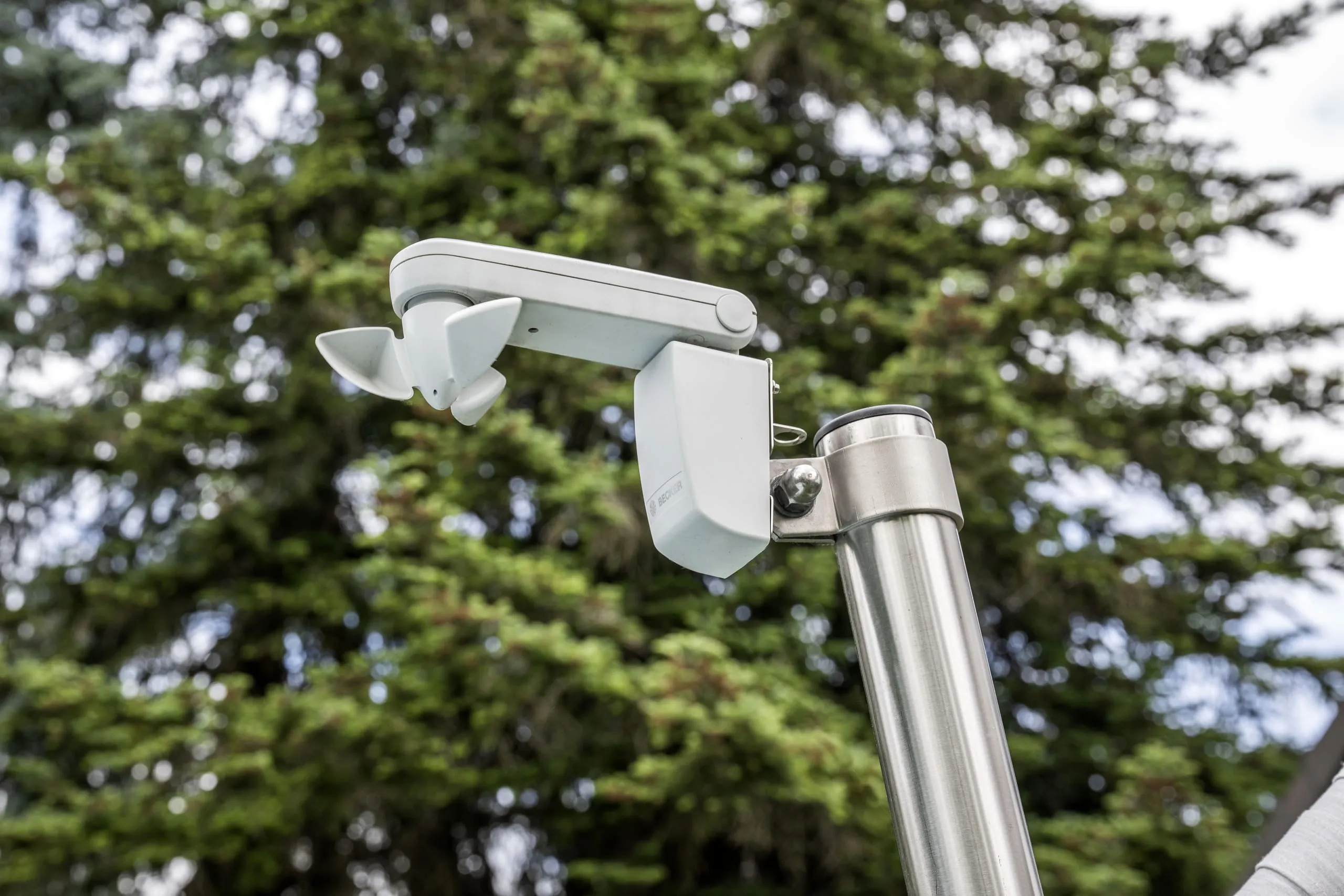 Das Herzstück der Anlage bildet ein Sonnenschutzantrieb mit integriertem Funk der Serie C12 von Becker. Die Steuerung erfolgt über einen Funkhandsender. Ein solarversorgter Sensor misst die Sonnenintensität und Windverhältnisse. Bei intensiver Sonneneinstrahlung fährt das Sonnensegel automatisch aus. Bei starkem Wind oder Gewitter zieht es sich ein, um Beschädigungen zu vermeiden. Durch die Solarversorgung entfällt die aufwändige Verlegung von Kabeln, was die Nachrüstung macht.