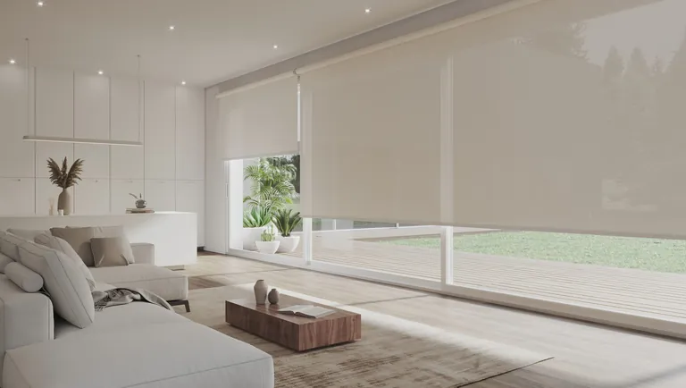 MHZ hat ein Rollo entwickelt, das speziell für großflächige Verglasungen gedacht ist. Der Behang stammt aus der Kollektion von Serge Ferrari.