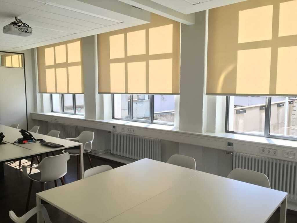 Sonnenschutz für Arbeitsplätze – eine besondere Herausforderung in einem Altbau. Hinzu kamen für den Raumausstatter aus Freiamt unterschiedlich große Fenster.