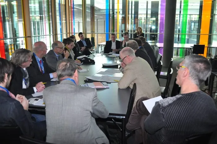 In der Jury zum R+T Innovationspreis (hier die entscheidende Sitzung mit oben v.li. den LMS-Vertretern Sebastian Schmid und Thomas Walter sowie Vorsitzendem Dr.-Ing. Christoph Meyer) waren die wichtigsten Medien, Verbände, Institutionen der Branche vertreten. - © Kober