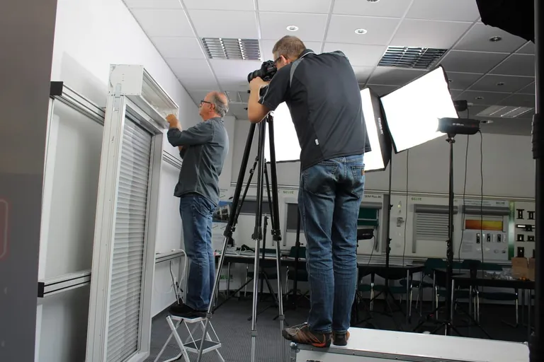 Making-of: Jens Achenbach, Selve-Produktmanager für Antriebstechnik, zeigt im Lüdenscheider Schulungscenter Schritt für Schritt, wie die Installation des Notfall-Rollladenmotors SP Rescue funktioniert. - © Selve