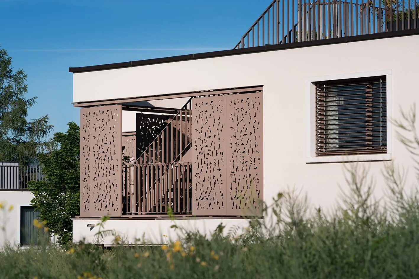 Mit dem Projekt Wechselächer entstanden in Unterengstringen, in der Region von Zürich, 27 schöne und großzügige Mietwohnungen. Jede von ihnen hat entweder eine Dachterrasse, eine Loggia im Obergeschoss oder einen Gartensitzplatz. Um vor neugierigen Blicken sowie vor Wind und Sonne zu schützen, wählte Walter Maio, Leiter Architektur und Baurealisation der Firma Profil-Immobilien AG, zum ersten Mal Schiebeläden aus Aluminium der Firma Ehret. Dabei überzeugten ihn das Erscheinungsbild und die einfache Handhabung. Auch für zukünftige Projekte wolle er wieder Schiebeläden einsetzen.