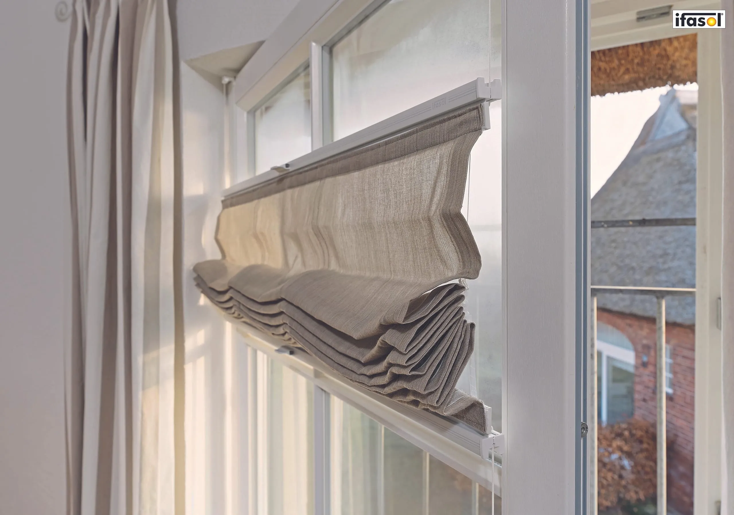Ifasol hat als jüngste Produktentwicklung im Bereich innen liegender Sonnenschutz ein ganz besonderes Raffrollo vorgestellt. „Bei uns ist die neueste Entwicklung das Raffrollo, ganz speziell das Raffrollo mit der Technik aus dem Bereich Plissee", sagt Christian Fahl, Geschäftsführer von Ifasol. Die Lösung kombiniert nach seinen Angaben die Eigenschaften der Plisseetechnik mit den wohnlichen Stoffen des Raffrollos.