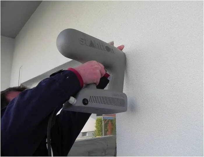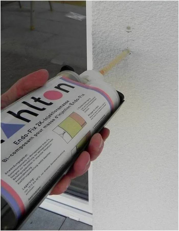 der Anwender mittels eines heißen Druckluftstoßes einen definierten Hohlraum in der Dämmung. Über einen Dichtstöpsel mit Rückschlagventil wird anschließend der Hohlraum mit der Injektionsmasse Endo-Fix verfüllt. Das Zwei-Komponenten-Material breitet sich in dem Hohlraum aus und schafft einen stabilen Befestigungspunkt. Nach einer Abbindezeit von 30 Minuten verschraubt der Anwender mit Spanplatten-, Holz- oder Blechschrauben ohne Schaft. Die Endfestigkeit ist nach zwölf Stunden erreicht. Dadurch entfallen die Planung und die Beschaffung von Montageeinlagen sowie der Zeitaufwand für deren Einbau. Pro Befestigungspunkt kann eine Belastung mit einer Querkraft von 30 Kilogramm dauerhaft und wärmebrückenfrei verankert werden. „Diese Ausführung ist überaus effizient und gewährleistet eine hohe Flexibilität“, betont André Flemming, Geschäftsführer von Atec Innovation.