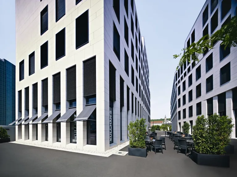 Und welche technischen Anforderungen müssen Raffstores erfüllen, damit sie sich ohne viel Aufwand in die Fassade integrieren lassen und für ein elegantes Erscheinungsbild sorgen? "Am besten ist es, wenn der Sonnenschutz komplett in der Fassade verschwindet, denn im Entwurf sind so gut wie nie Sonnenschutzkästen als gestalterisches Element vorgesehen", weiß Radicic von Roma. "Es gilt also, in Höhe, Breite und Tiefe ein möglichst wenig aufbauendes System zur Verfügung zu stellen."