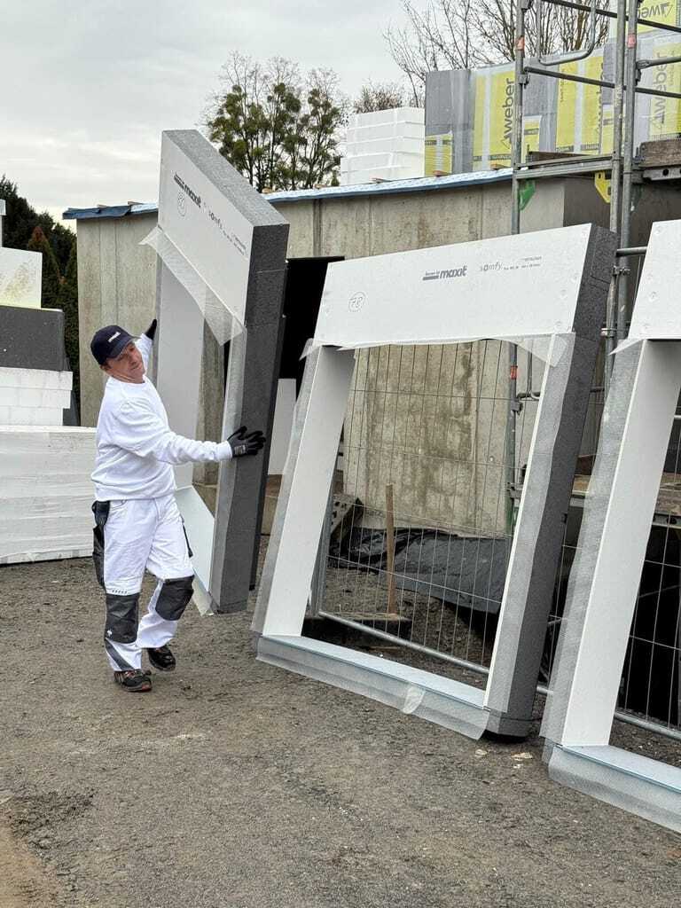 Die Besonderheit liegt in der Vorfertigung: Maxit liefert die Sonnenschutzzarge passgenau für das jeweilige WDVS vormontiert. Im Rahmen der Dämmarbeiten wird sie direkt vor das außenbündig am Mauerwerk montierte Fenster aufgesetzt. Das zugehörige Sonnenschutzmodul von Folgner – mit Rollladen, Raffstore oder Zip-Screen ausgestattet – kommt inklusive Somfy-Antrieb auf die Baustelle und wird in die vorbereitete Zarge eingeschoben.
