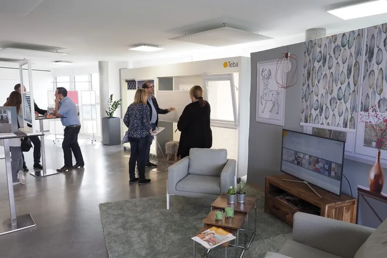 „Die Location kommt von der Gestaltung her einem Wohnraum sehr nahe“, lobt Schwarz die von Teba kreierte Atmosphäre in den angemieteten Räumlichkeiten. Vom Qualitäts-
